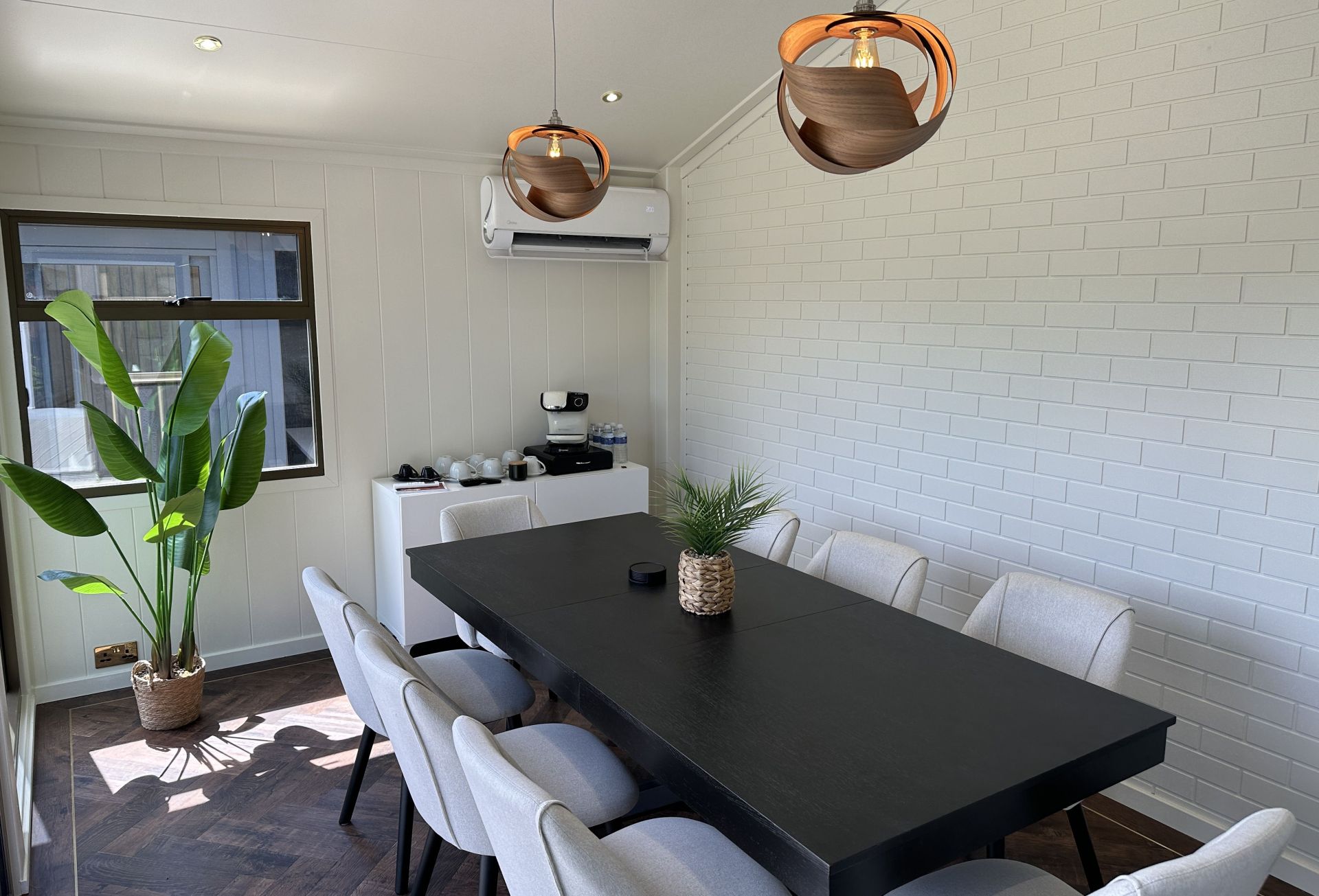 The walls and ceiling are where you set the tone for your garden room. A fresh coat of paint can transform the space entirely. For a bright, airy feel, stick to neutral colours. If you want to make a bold statement, consider a striking feature wall in a dark or vibrant shade.
